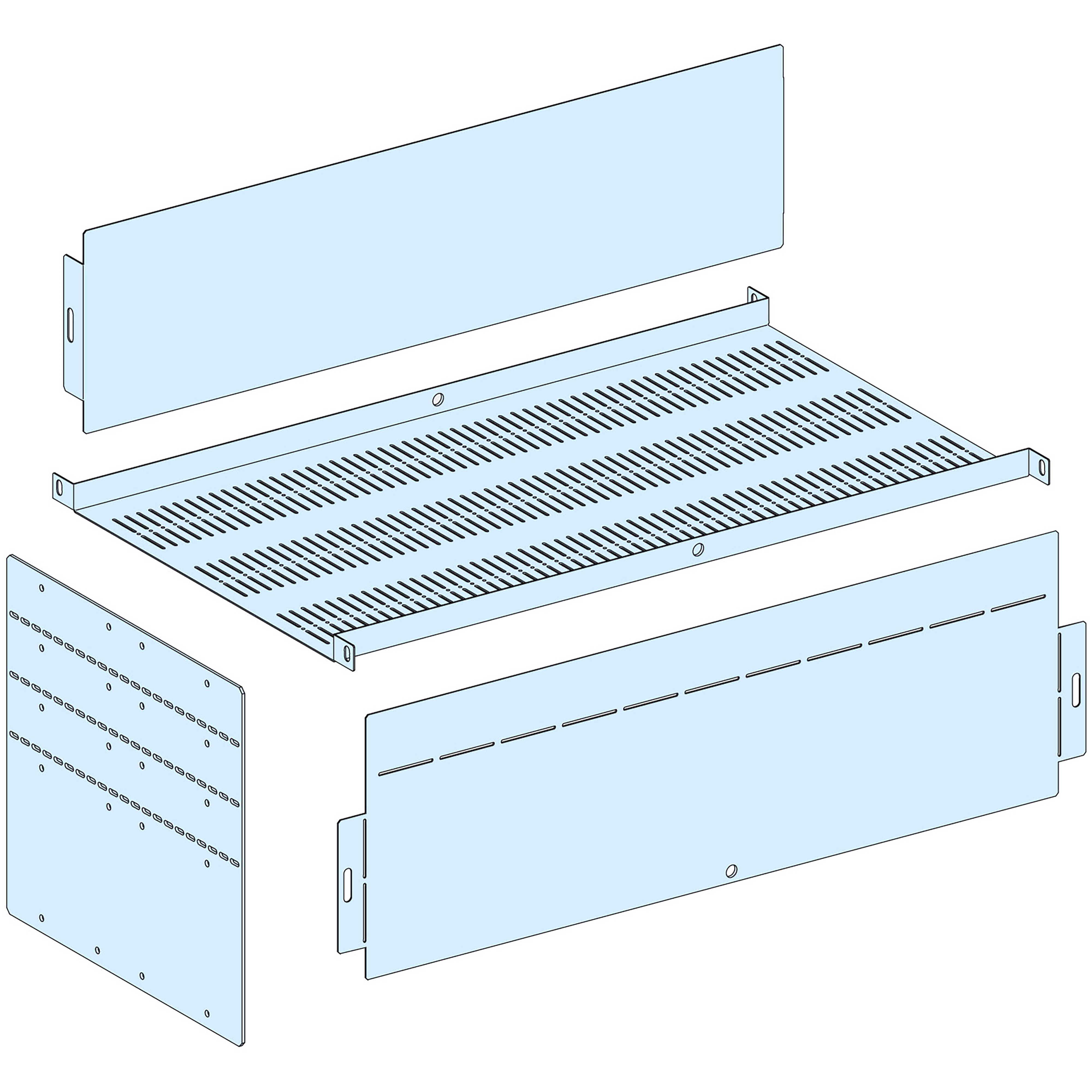 Connection cover for Prisma. The cubicle partitioning form is Form 1. It could be horizontal connection for NW, NT, NS, INS and INV. It could be installed in width 650 mm, depth 600 or (600 + 400) mm cubicle. It is suitbale for 4 50-mm vertical modules. Sold in lots of 1 unit. It is also compliant with Green Premium (RoHS/REACH).