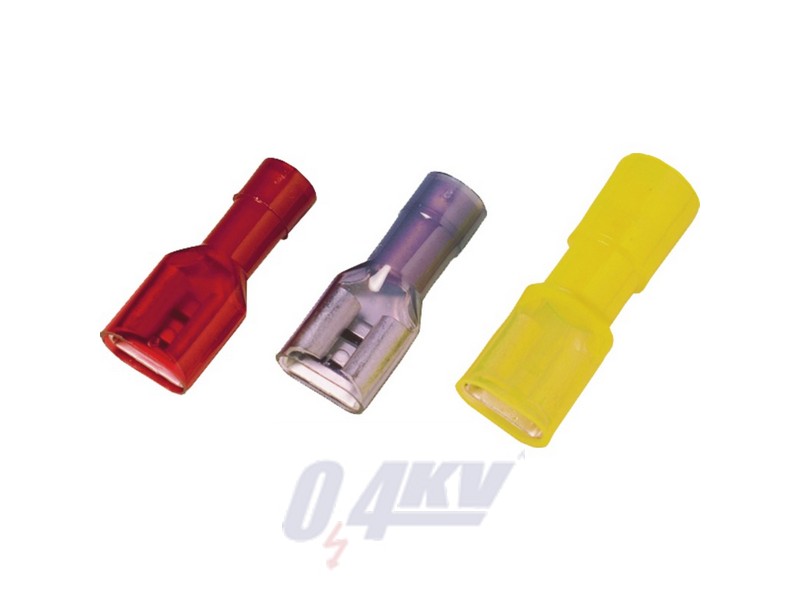 Insulated flat blade receptacle with conical insert funnel.
