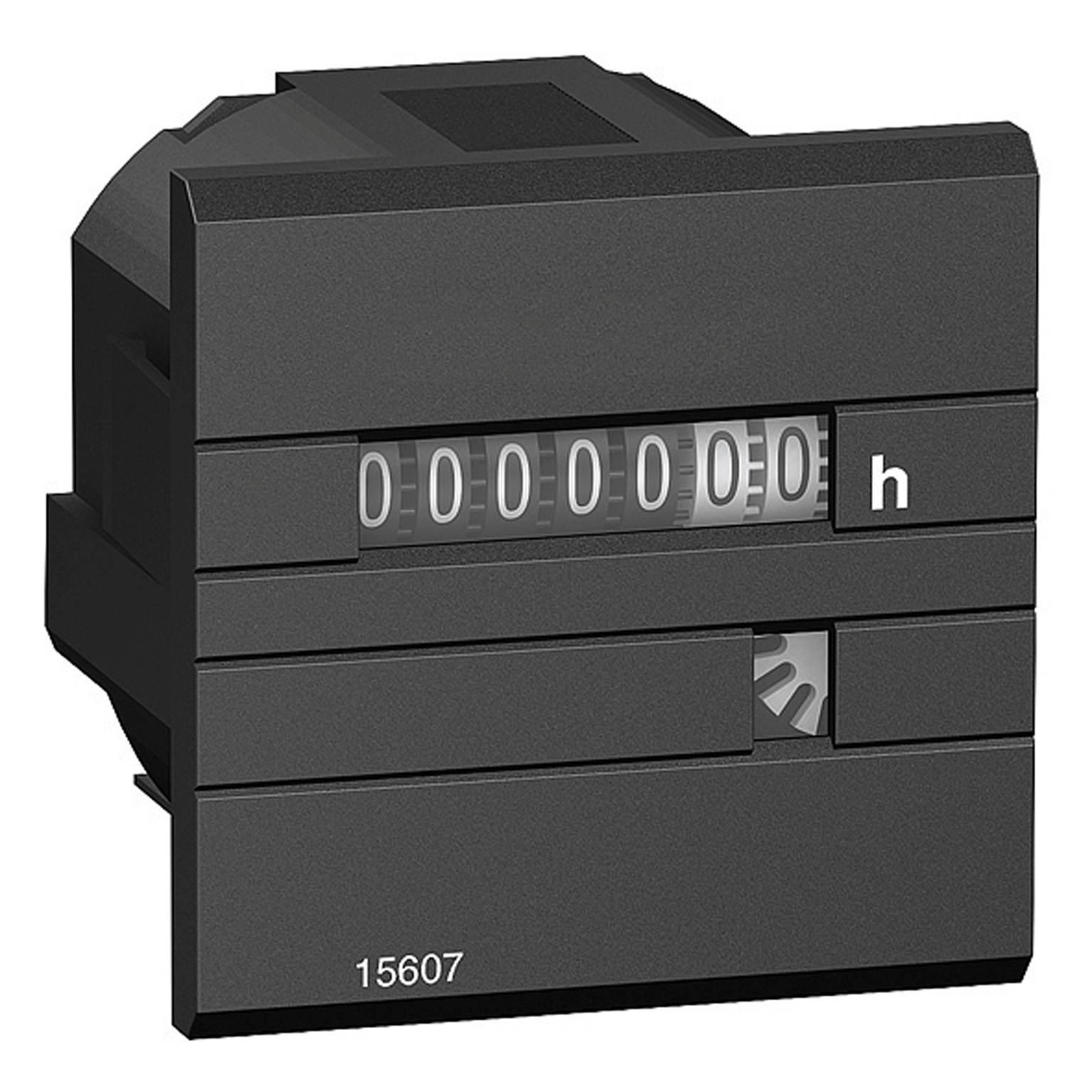 This instrument is aimed to be mounted on front face of monitoring switchboards. The electromechanical counter that counts the operating hours of a machine or piece of electrical equipment. Giving a precise indication of operating time, the counter is used to decide when to carry out preventive maintenance. The counter is powered by a 24V AC supply, at 50Hz. The electromechanical display is composed by 5 digits plus 2 for decimals, and indicate operating time up to 99,999.99 hours. This instrument do not have a reset button. The dimensions of the product are 48mm by 48mm and 39mm in depth.
