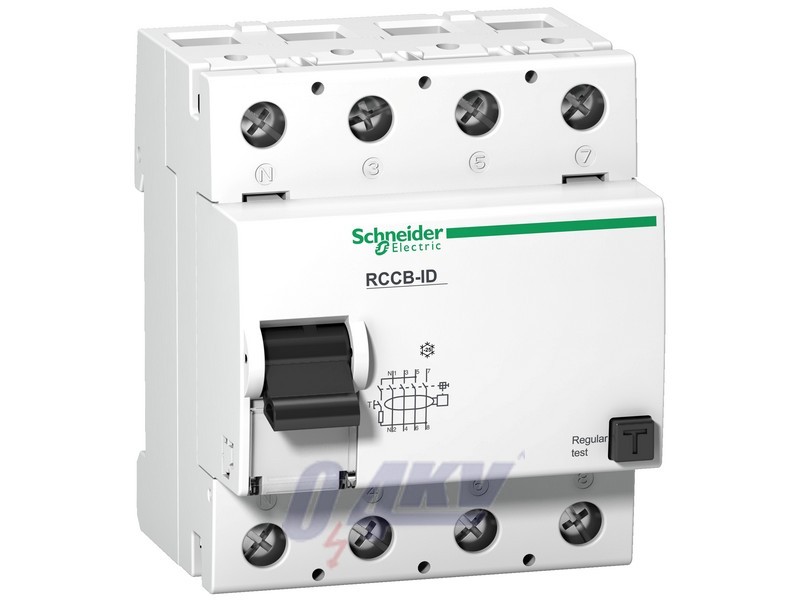 This product is a Acti9 RCCB-ID residual current circuit breaker (RCCB). It is a 4P circuit breaker with 125A In rated current, a sensitivity of 500mA with a A type protection class. This product protects against electrical shock by indirect contact and fire hazards. The status of the product is indicated via the 3 position toggle and a front panel indicator. The Acti9 RCCB-ID ensures protection in all industrial and tertiary buildings. This product is compliant with IEC 61008, IEC 60947-1 and IEC 60947-3 standard. The (Im/IΔm) rated breaking and making short circuit capacity is 1250A. The (Inc/IΔc) conditional rated short circuit current is 10kA. The mechanical endurance is going up to 5000 cycles and electrical endurance going up to 2000 cycles. The Ue operational voltage is 400VAC. The Ui rated insulation voltage is 440VAC. The Uimp rated impulse withstand voltage is 4kV. The frequency is 50Hz or 60Hz. It is DIN rail mountable. The width in 9mm pitches is 8. The product colour is light grey (RAL7035). The dimensions are (W) 72mm x (H) 86mm x (D) 76mm. The weight is 420g. It has an IP20 degree of protection (as per IEC/EN 60529 standard) and becomes IP40 once in modular enclosure. The operating temperature is from -25°C to 40°C. The storage temperature is from -40°C to 85°C.