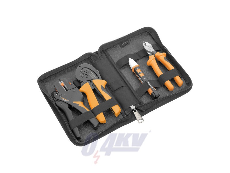 Toolbag for transporting crimping tools for cable lugs, connectors and wire-end ferrules with interchangeable inserts.