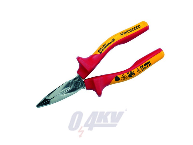 Megnevezés: Hegyescsőrű fogó, 160 mm, Hajlított, Védőszigetelés, 1000 V: Igen