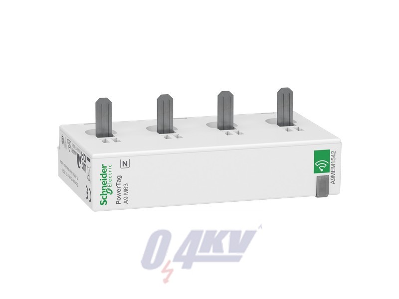 This PowerTag A9 M63 3PN B for Acti 9 and Multi 9 Monoconnect offers is a Class 1 wireless-communication energy sensor. It is designed specifically for Energy Management, Load Monitoring and Power Availability applications. It has to be associated with a concentror PowerTag Link or SmartLink SI to provide circuit monitoring and diagnosis down to load level. It sends a voltage loss alarm and the current-per-phase value before being de-energized. It incorporates accurate real-time measurements of active energy, active power, current, power factor and voltage. It is dedicated to 3P+N devices with 18mm pitch between phase and neutral, rating less than or equal 63A. It can be only mounted on the bottom of the protective device. The Saturation current is 130A. The Ist starting current is 40mA. The degree of protection is IP20 and IK05. The Imax maximum current is 63A. The Ib Base current is 10A. The maximum consumption is below or equal to 2VA. The Operating temperature is between -25°C to +60°C. The Storage temperature is between 40°C to +85°C. The Performance category is Class 1. PowerTag Energy 63A complies with IEC 61557-12 standard.