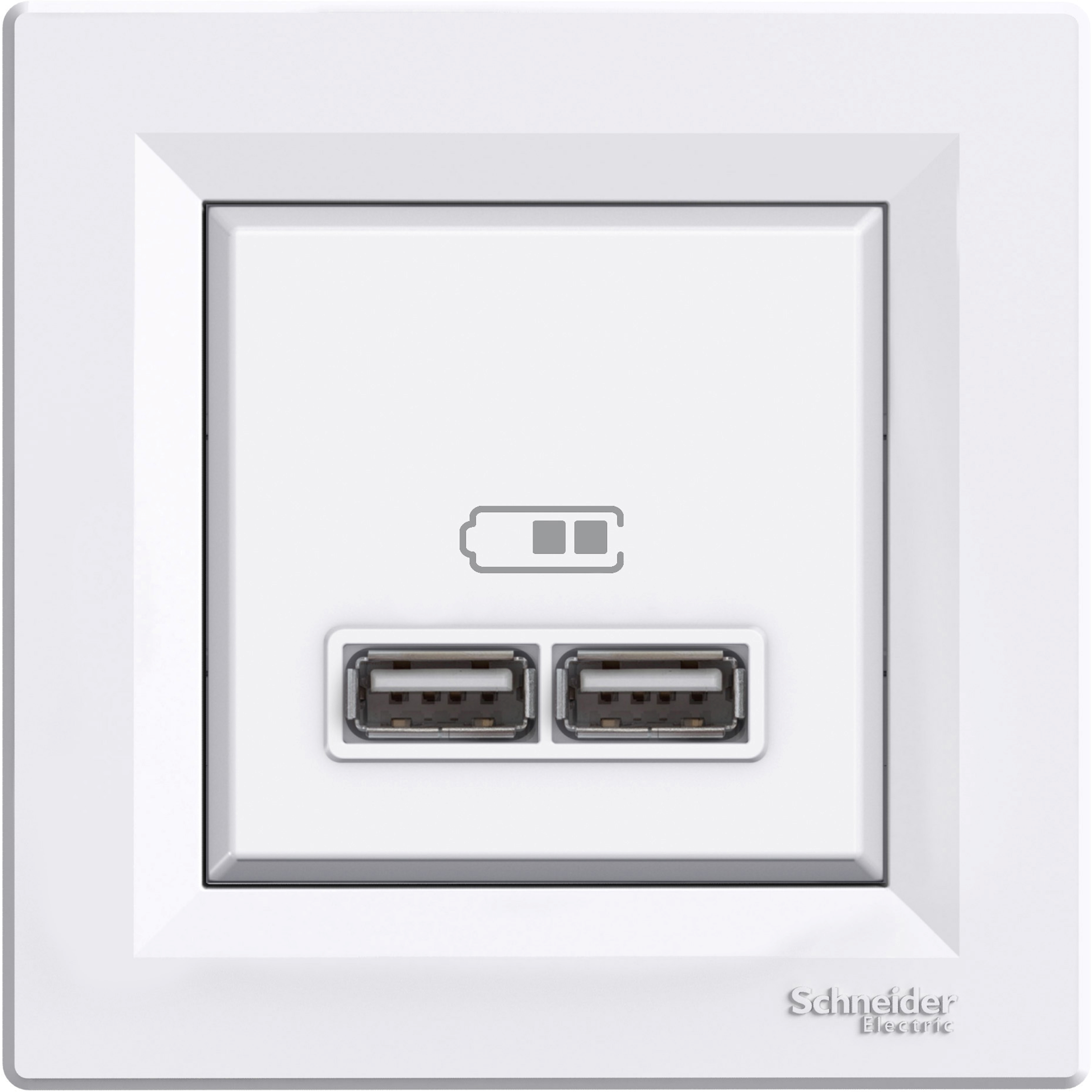 Schneider Electric Asfora USB charger EPH2700221 is a mechanism with fixing frame in color white with 2 terminals. This USB charger is with USB 2.0 port, which is compatible with mobile/tablet devices. Its power consumption is 0.1W. 100...240V is the rated operational voltage. The input power of this USB charger is 12W. And the nominal output power of this USB charger is 10.5W, with output current is 2.1A. The protection type of this USB charger is short-circuit protection, improving safety level. Its fixing mode is by claws, by screws. It is 22.5 mm in width, 45 mm in height, and 42 mm in depth, whose embedding depth is 30.8 mm. The device box can be recessed into the surface with flush mounting type. The service life of this USB charger is 30000 hours, making it robust enough. The USB charger effectively prevents electric shocks and equipment damage with electrical insulation class II. Besides, it reaches IK04 protection level, protecting against 0.5 joules of impact, the equivalent to the impact of a 0.25kg mass dropped from 200mm above the impacted surface. It reaches IP20 degree of protection too. What's more, it's directives are 2002/95/EC - Ro. HS directive, 2002/96/EC - WEEE directive, 2004/108/EC - electromagnetic compatibility, 2006/95/EC - low voltage directive. Being made of ABS (acrylonitrile butadiene-styrene), PC (polycarbonate) GF10 FR material, this USB charger is very reliable and resistant. Also, being environment-friendly, this device reached Regulation (EC) No 1907/2006. This equipment is qualified for EN 60950-1, EN 62684, ETSI EN 301 489-4 standard as well. It obtained EAC certificates as well. Asfora products are made from high-quality materials that won't yellow over time. The sleek, elegant design harmonizes perfectly with virtually any interior.