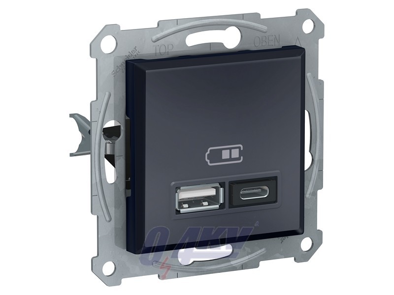 Schneider Electric Asfora USB charger EPH2700371 is a mechanism with fixing frame in color anthracite with 2 terminals. This USB charger is with USB 2.0 port, which is compatible with mobile/tablet devices. Its power consumption is 0.075W. In addition, the rated operational voltage of this device is 100...240V. The input power of this USB charger is 12W. And the nominal output power of this USB charger is 12W, with output current is 2.4A. With short-circuit protection type, this USB charger concerns your safety. The fixing mode of this device is by claws, by screws. 22.5 mm, 45 mm, 42 mm is its dimension, whose embedding depth is 30.8 mm. The device box can be recessed into the surface with flush mounting type. This USB charger is very reliable, with 30000 hours of service life. Its electrical insulation class reaches class II, which helps guard you against electric shocks and avoids equipment damage from accidental discharges. Besides, it reaches IK04 protection level, protecting against 0.5 joules of impact, the equivalent to the impact of a 0.25kg mass dropped from 200mm above the impacted surface. The IP rating of this device is IP20. What's more, it's directives are 2002/95/EC - Ro. HS directive, 2002/96/EC - WEEE directive, 2004/108/EC - electromagnetic compatibility, 2006/95/EC - low voltage directive. Being made of ABS (acrylonitrile butadiene-styrene), PC (polycarbonate) GF10 FR material, this USB charger is very reliable and resistant. Also, it is environment-friendly, with Regulation (EC) No 1907/2006 reached. This equipment is qualified for EN 60950-1, EN 62684, ETSI EN 301 489-4 standard as well. It obtained EAC certificates as well. Asfora products are made from high-quality materials that won't yellow over time. The sleek, elegant design harmonizes perfectly with virtually any interior.