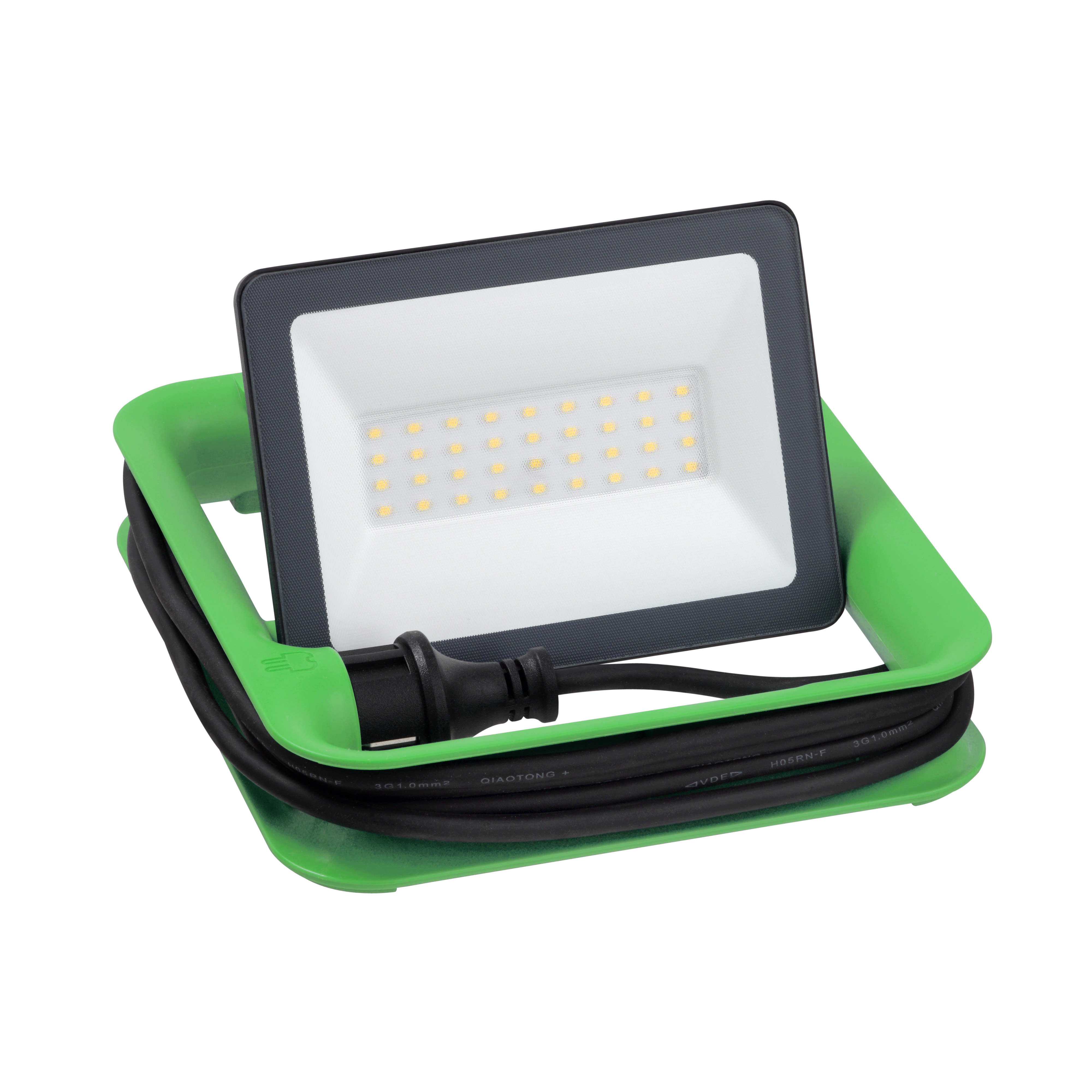 Mureva lights, LED work light equipped with the latest Led technology to offer energy efficiency up to 100 lm/W. High light quality Led work light with a luminous flux 2000 lm, color temperature 4000 K and a long lifetime LED chip of 50000 h without getting hot. This work light has an ergonomic design, a rectangular shape (height 229,5 mm, width 204,5 mm and depth 40 mm) and a weight of 850 g. Easy to store, transport and carry, it has a compact design with cable management that can be used on the ground or hanged. With a high IP rating IP65, this LED work light is suitable to be installed in all types of weather conditions, indoor or outdoor.