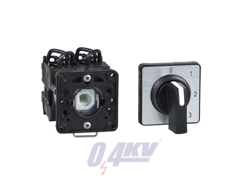 This K1 ammeter switch is ideal for switching between phase current measurements on a switchboard, has a rated voltage of 690V AC and a rated current of 12A. It has a square shape and a metallic legend with black marking. It is IP65 and installs in a 22mm hole. Its high IP allows for handling of panel operations in very dusty and wet environments, including outdoors.
