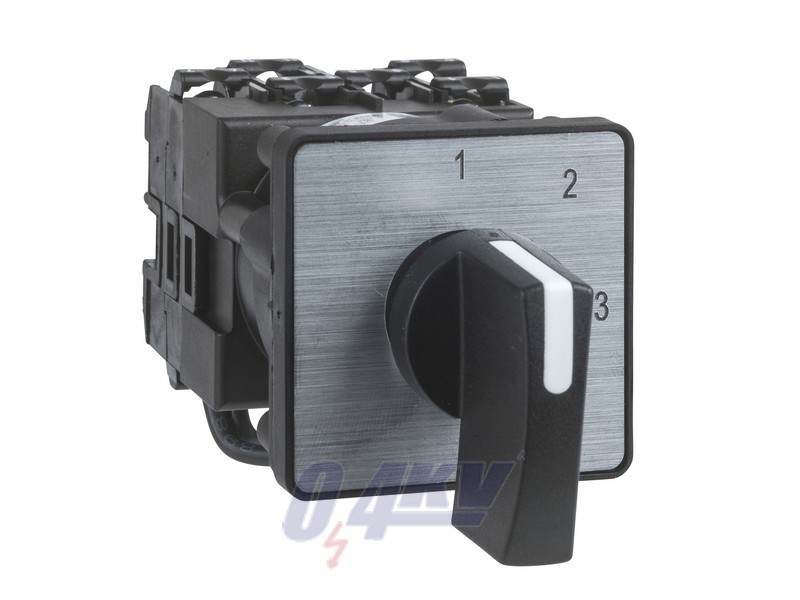 This K1 ammeter switch is ideal for switching between phase current measurements on a switchboard, has a rated voltage of 690V AC and a rated current of 12A. It has a square shape and a metallic legend with black marking. It is IP65 and installs with screws. This ammeter phase switch offers the maximum mechanical and electrical robustness of its class, for prolonged operation without maintenance. Its high IP allows for handling of panel operations in very dusty and wet environments, including outdoors.