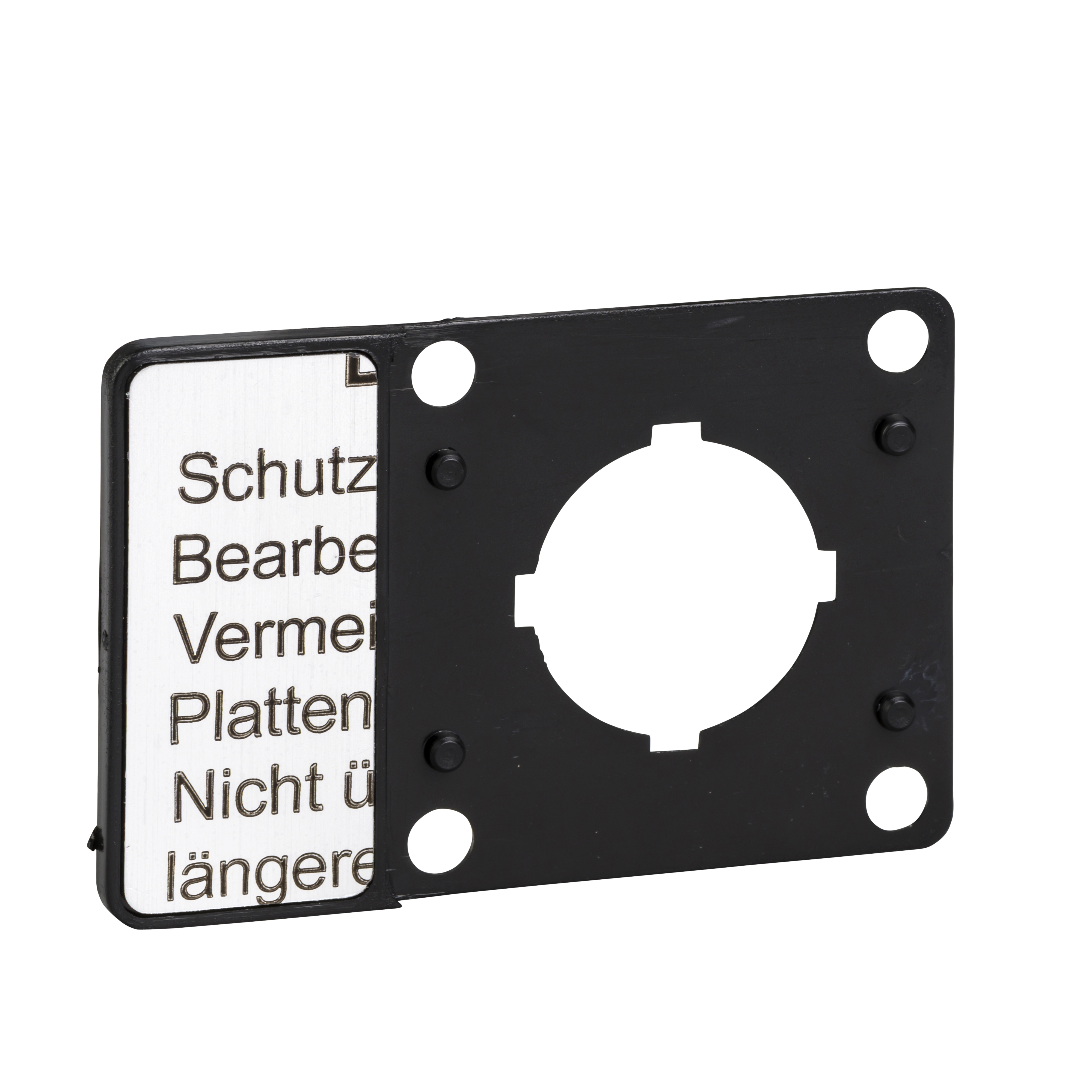 TeSys Vario door mounting accessory, for Vario switch-disconnectors. Legend holder with blank legend plate to be used with 45 x 45 mm front plates. Sold in lots of 5 units. Green Premium product (RoHS/REACh).