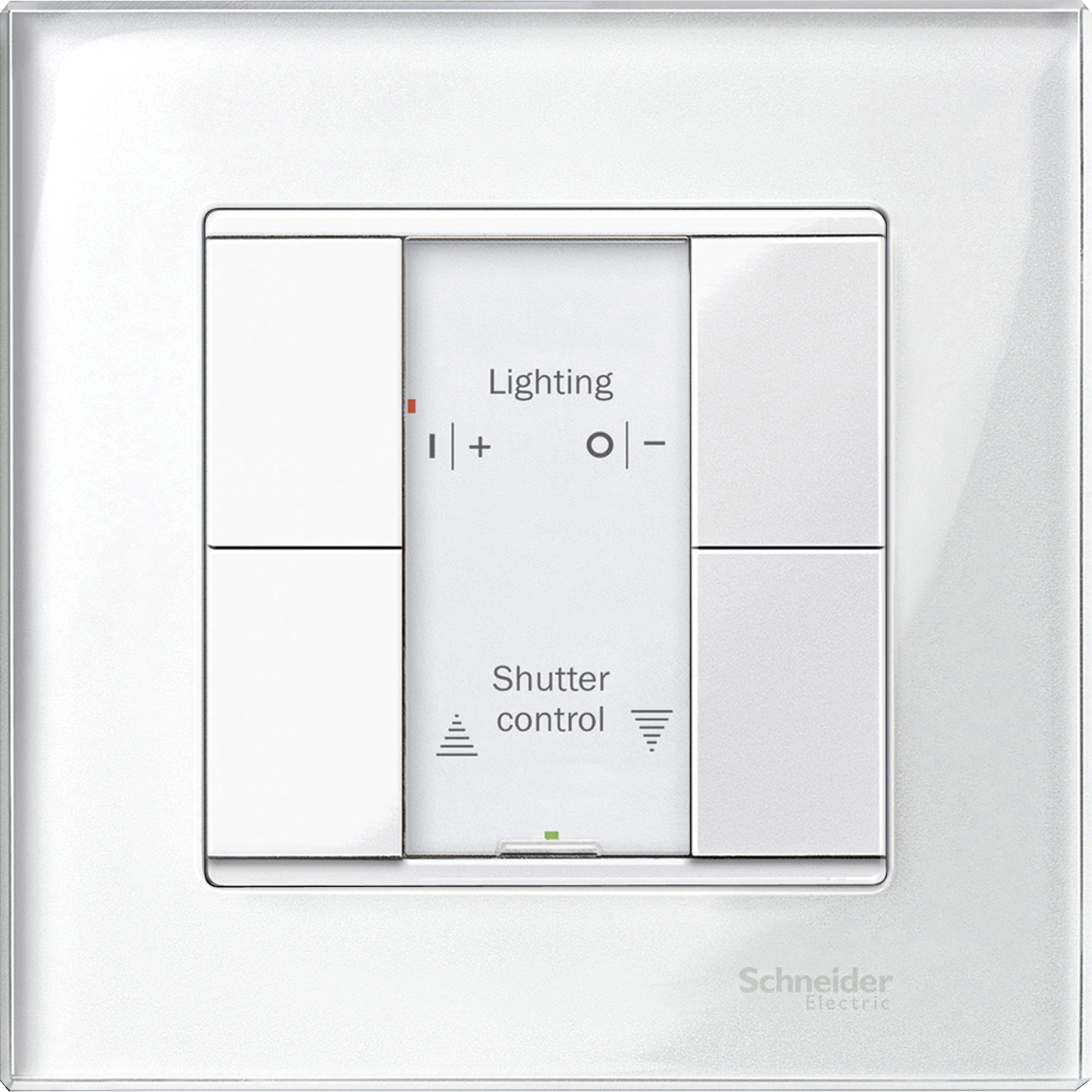 KNX Push-button, 2-gang plus. For System M. With integrated bus coupling unit. Push-button with 4 operating buttons, operating and status display and labelling field. The operating display can also be used as an orientation light. The device is connected to the bus line with a bus connecting terminal. KNX software functions: Switching, toggling, dimming (single/dual-surface), blind (single/dual-surface), pulse edges trigger 1-, 2-, 4- or 8-bit telegrams. Distinction between short and long operation, pulse edges with 2-byte telegrams (distinction between short and long operation), 8-bit linear regulator. Scene retrieval, scene saving, disable functions. Contents: With protective hood for plaster. With bus connecting terminal. Material: thermoplastic brilliant. Colour: polar white, glossy.
