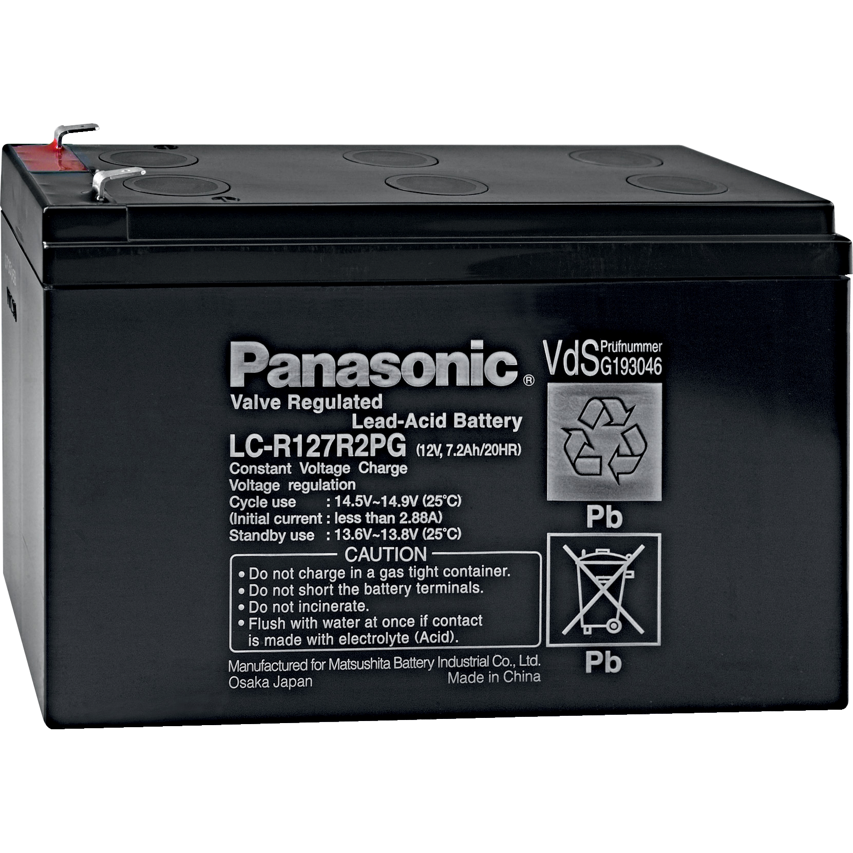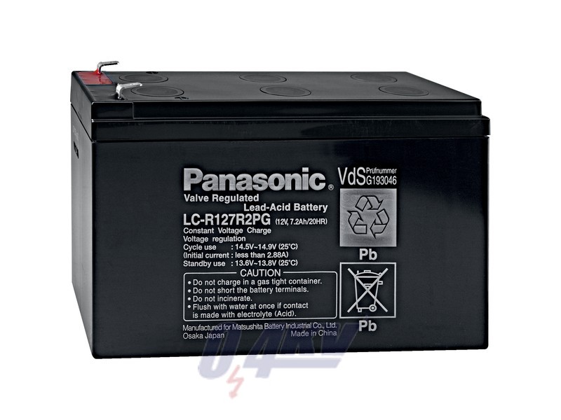Lead gel battery, 7.2 Ah. Lead gel battery to connect to the emergency input of the power supply 320 REG-K with battery connection. Nominal voltage: DC 12 V. Capacity: 7.2 Ah. Version: 7.2 Ah.