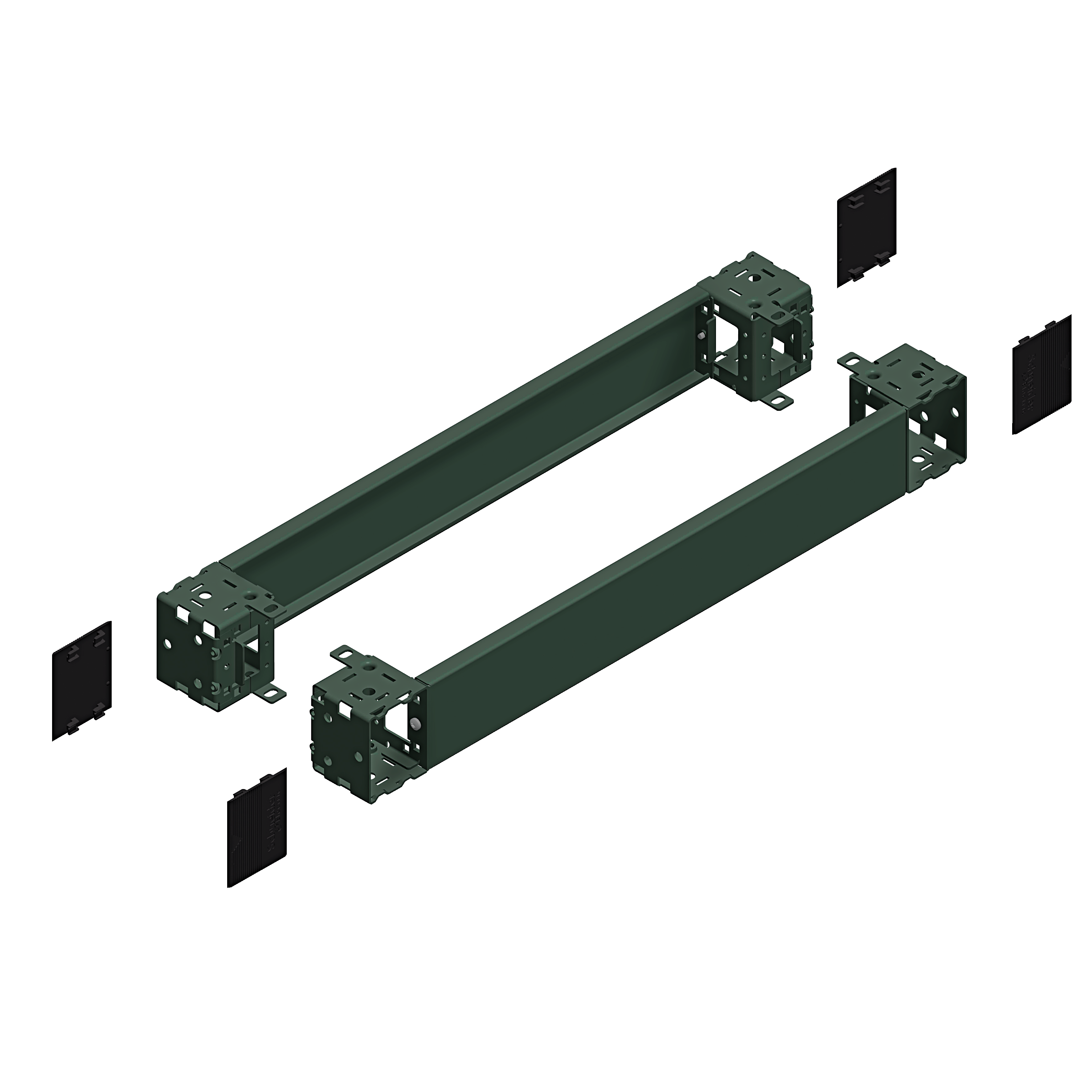 Front plinth for Spacial SF, SM. 100 x 400 mm. Multi-purpose enclosure accessory. Plinth side panels mounting support. Permanent permissible load 1300kg. Fixing mode by fixing element. Epoxy-polyester powder surface finish. Grey RAL 7022. IP30 complete plinth, IK10.