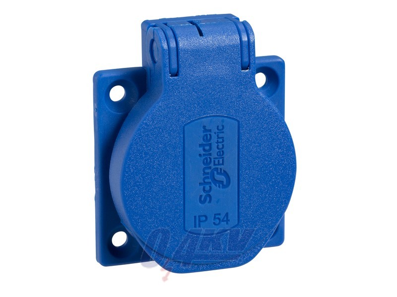 This Pratika industrial socket with captive screws connection is straight panel mounted. It has 2P+E poles, rated current is 10A to 16A and the operating voltage is 250VAC. The dimensions of the base plate are (W) 65mm x (H) 85mm. The degree of protection is IP54 and IK09. The fire resistance is 850°C. The cable entries are for flexible or rigid cables. The color of the socket is blue to easily identify the operationg voltage. The frequency is 50Hz or 60Hz.